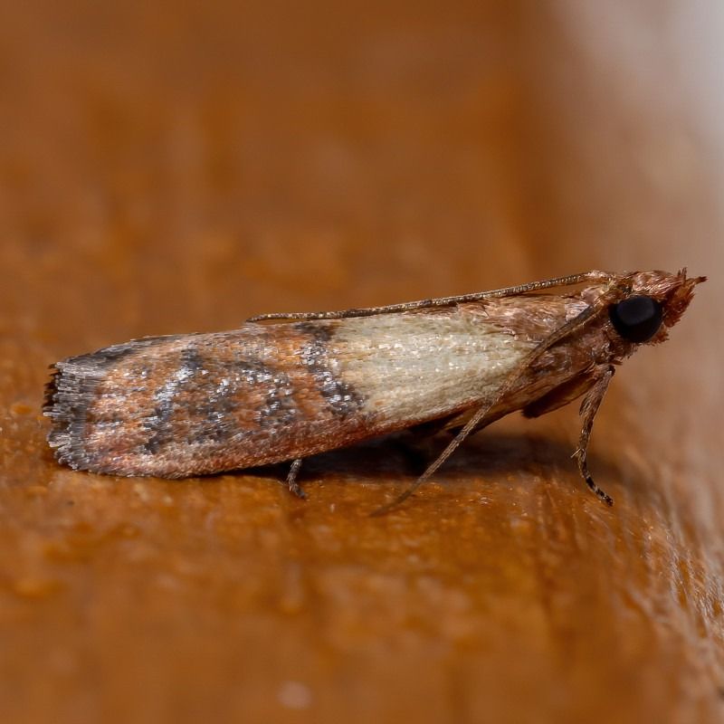 Si tratta di “plodia interpunctella”, anche detta farfalla delle farine, proprio per la sua propensione ad infestare i cereali e le relative farine: è esattamente lo stesso insetto che magari vi è capitato di trovare nel riso o nella farina per la polenta che avevate in dispensa da un po’ di tempo!